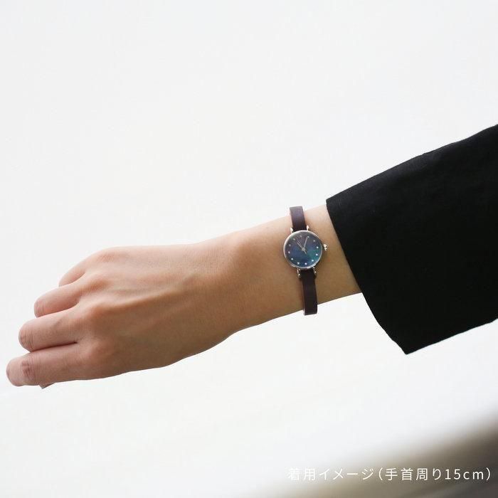 ベルトには7個穴が開いており、中央の穴で留めた場合、手首周りが15.5cmの方がちょうどよくお使いいただけます。