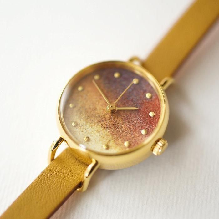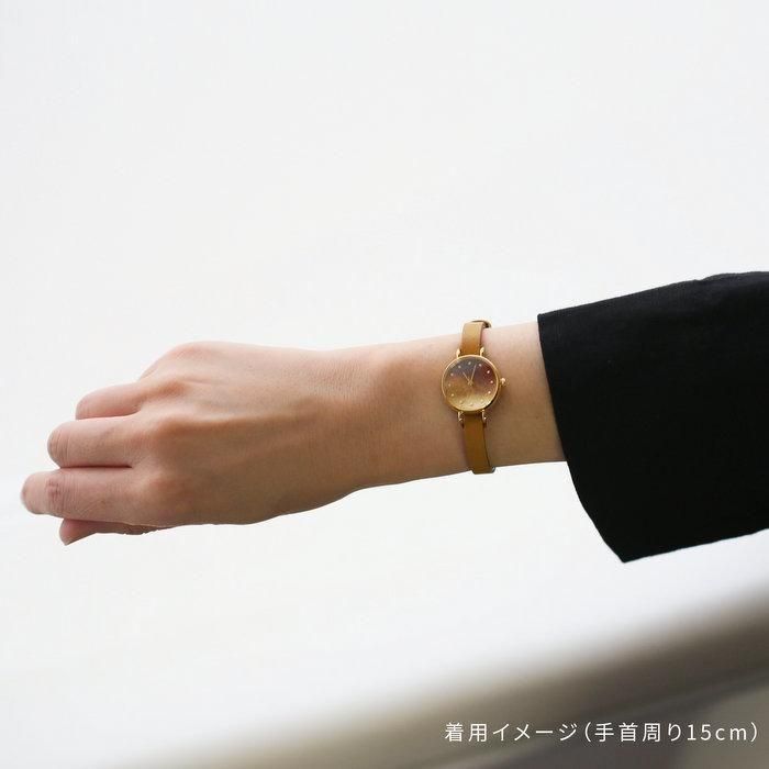 ベルトはおすすめの「革ベルト No.32 ターメリック」を合わせましたが、色違いのベルトや2重巻きなど、他のベルトをご希望の場合は、「時計本体のみ」をお選びいただき、別途ご希望のベルトを一緒にご購入ください。