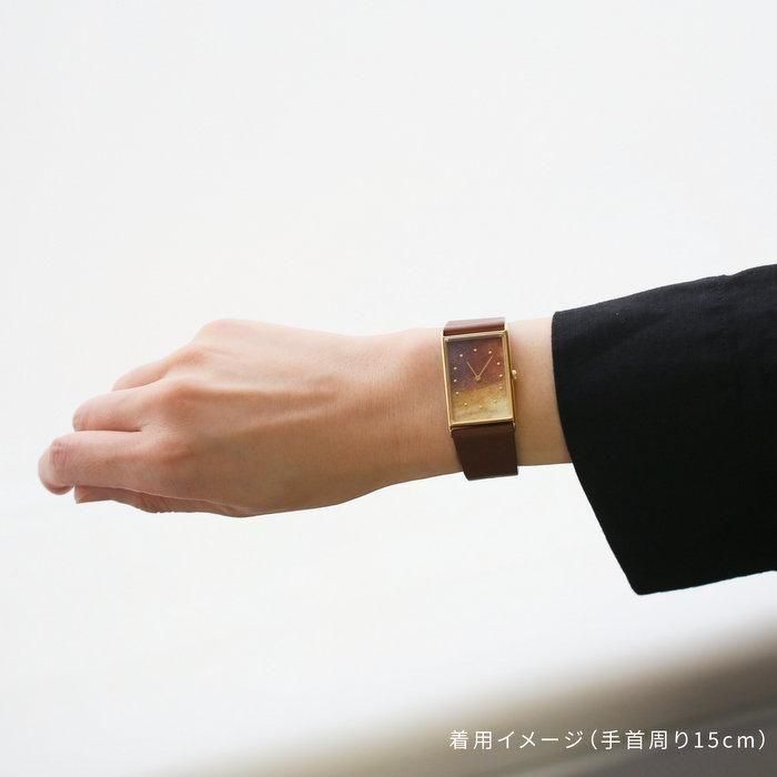 レディースサイズ(手首周り14.5-16.5cm対応)もしくはメンズサイズ(手首周り16-18cm対応)を基準に制作しています。 ベルトには7個穴が開いており、中央の穴で留めた場合、レディースサイズでは手首周りが15.5cmの方が、メンズサイズでは手首周りが17cmの方が、ちょうどよくお使いいただけます。