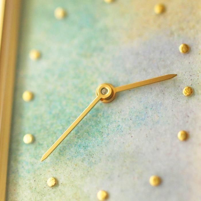 通常は1色の絵具を均一に塗ったものを「こないろ」として販売しておりますが、こちらの文字盤には、複数の岩絵具を塗りました。