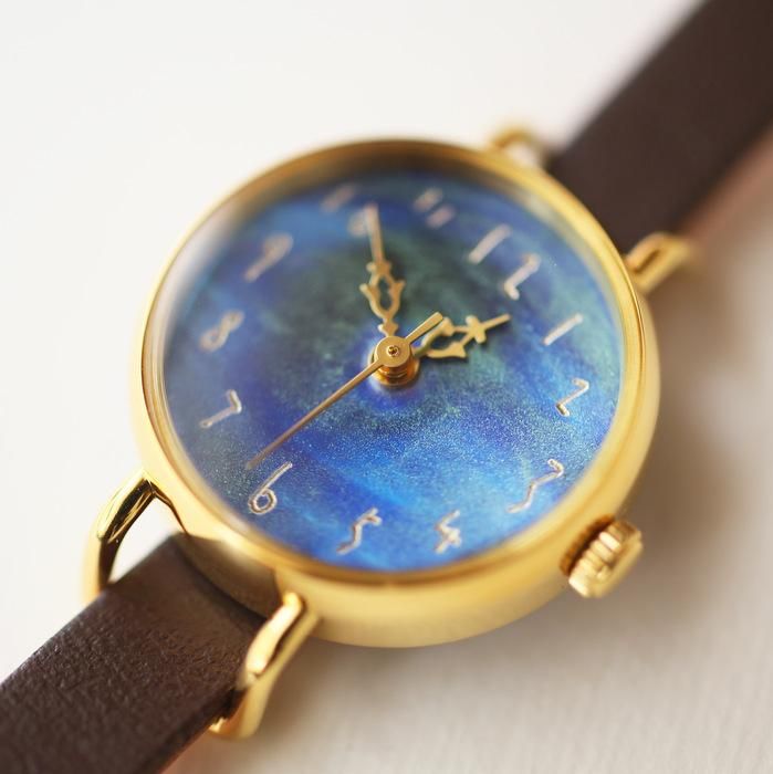 同じ絵具を同じように塗っても、ちょっとした水分の量や、乾くときの湿度、温度などで、濃淡の出方が一枚一枚異なります。そのため同じものを二度と作ることができず、正真正銘の世界にひとつだけの時計となります。