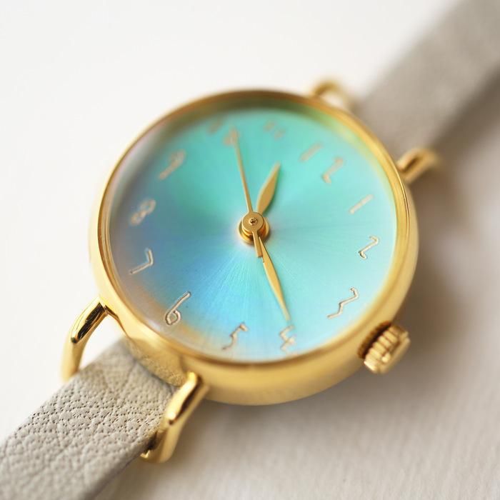 同じ絵具を同じように塗っても、ちょっとした水分の量や、乾くときの湿度、温度などで、濃淡の出方が一枚一枚異なります。そのため同じものを二度と作ることができず、正真正銘の世界にひとつだけの時計となります。
