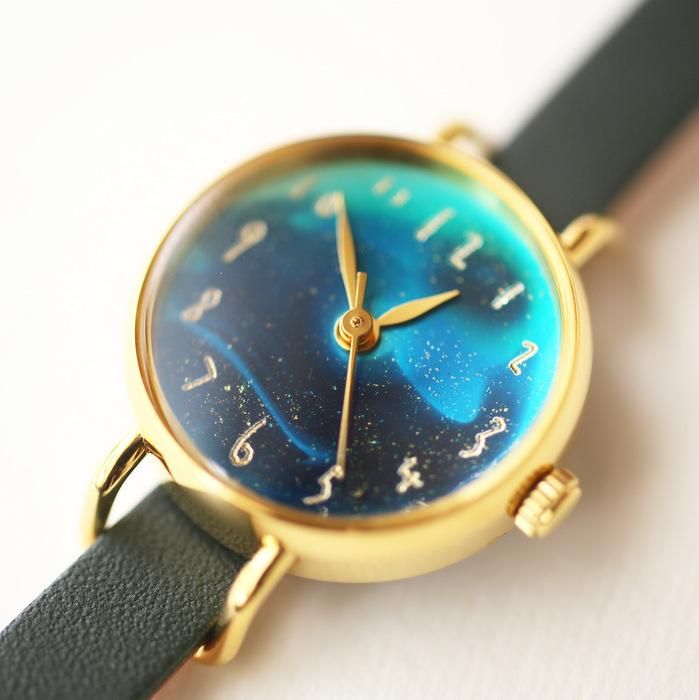 同じ絵具を同じように塗っても、ちょっとした水分の量や、乾くときの湿度、温度などで、濃淡の出方が一枚一枚異なります。そのため同じものを二度と作ることができず、正真正銘の世界にひとつだけの時計となります。