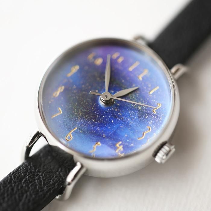 同じ絵具を同じように塗っても、ちょっとした水分の量や、乾くときの湿度、温度などで、濃淡の出方が一枚一枚異なります。そのため同じものを二度と作ることができず、正真正銘の世界にひとつだけの時計となります。