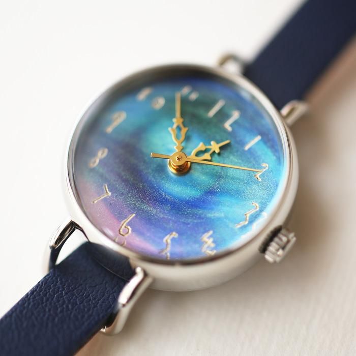 同じ絵具を同じように塗っても、ちょっとした水分の量や、乾くときの湿度、温度などで、濃淡の出方が一枚一枚異なります。そのため同じものを二度と作ることができず、正真正銘の世界にひとつだけの時計となります。