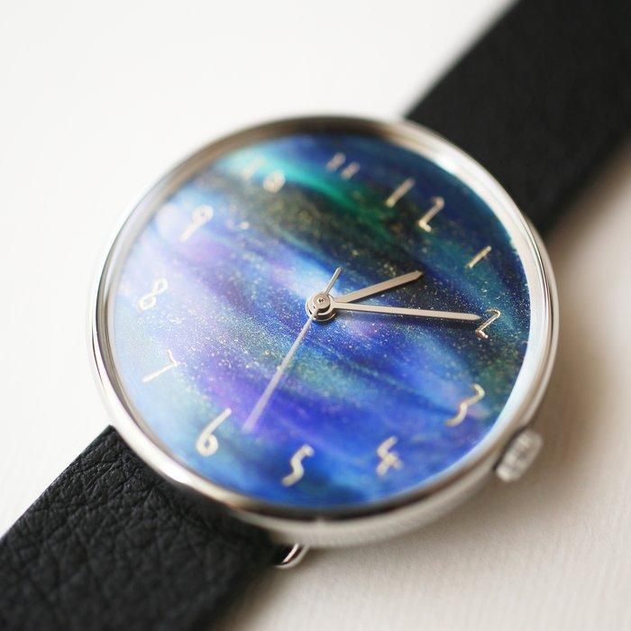 同じ絵具を同じように塗っても、ちょっとした水分の量や、乾くときの湿度、温度などで、濃淡の出方が一枚一枚異なります。そのため同じものを二度と作ることができず、正真正銘の世界にひとつだけの時計となります。