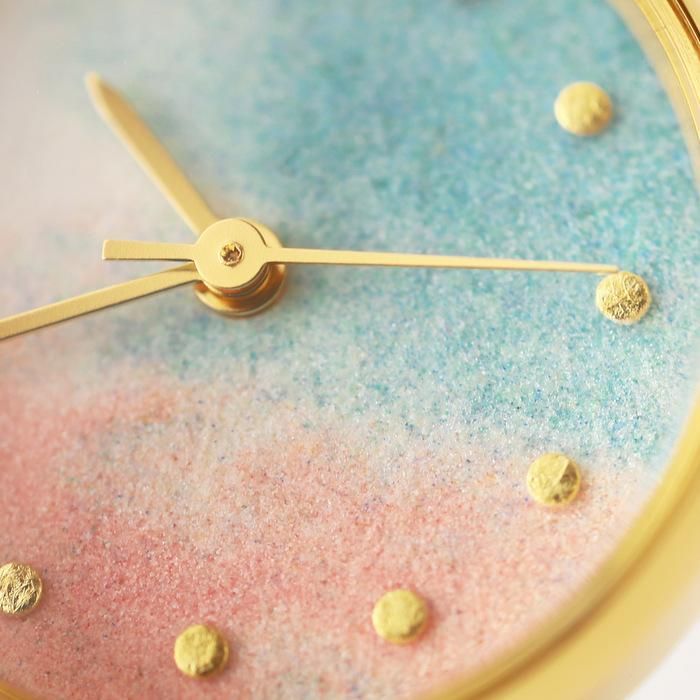 通常は1色の絵具を均一に塗ったものを「こないろ」として販売しておりますが、こちらの文字盤には、複数の岩絵具を塗りました。