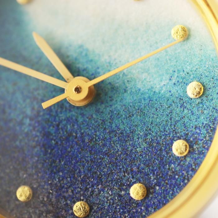 通常は1色の絵具を均一に塗ったものを「こないろ」として販売しておりますが、こちらの文字盤には、複数の岩絵具を塗りました。