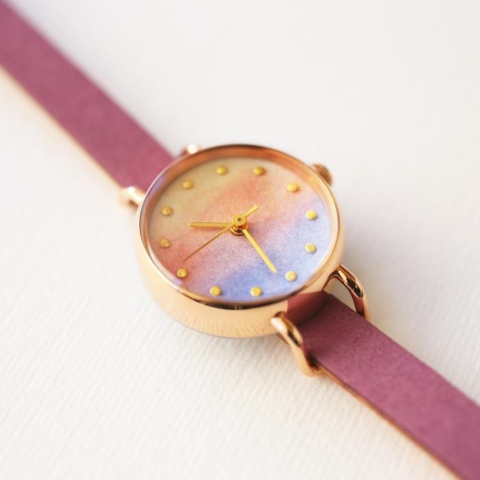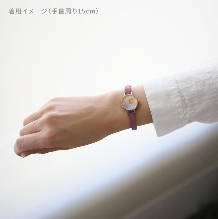 ベルトはおすすめの「革ベルト No.N1 グレープ」を合わせましたが、色違いのベルトや2重巻きなど、他のベルトをご希望の場合は、「時計本体のみ」をお選びいただき、別途ご希望のベルトを一緒にご購入ください。