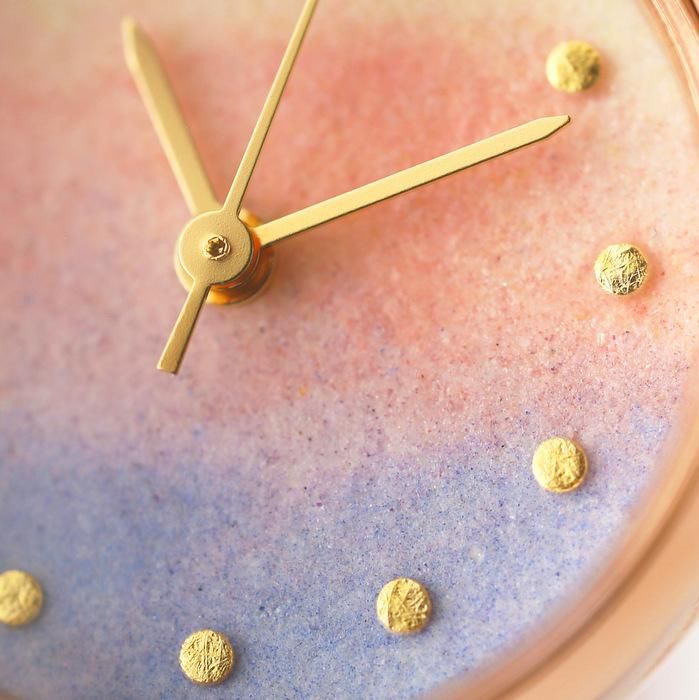 通常は1色の絵具を均一に塗ったものを「こないろ」として販売しておりますが、こちらの文字盤には、複数の岩絵具を塗りました。