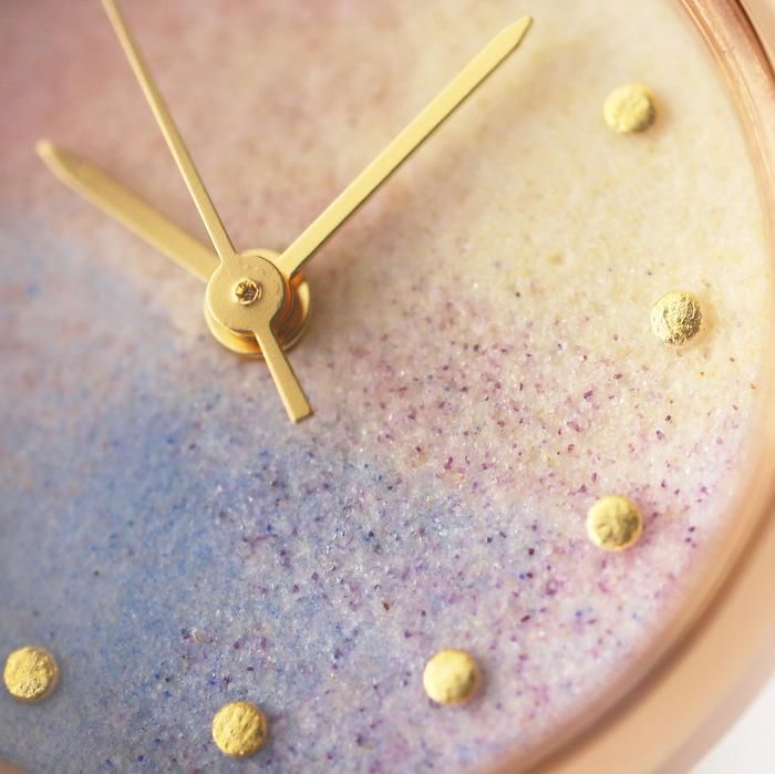 通常は1色の絵具を均一に塗ったものを「こないろ」として販売しておりますが、こちらの文字盤には、複数の岩絵具を塗りました。