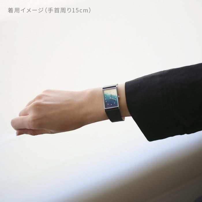 レディースサイズ(手首周り14.5-16.5cm対応)もしくはメンズサイズ(手首周り16-18cm対応)を基準に制作しています。 ベルトには7個穴が開いており、中央の穴で留めた場合、レディースサイズでは手首周りが15.5cmの方が、メンズサイズでは手首周りが17cmの方が、ちょうどよくお使いいただけます。