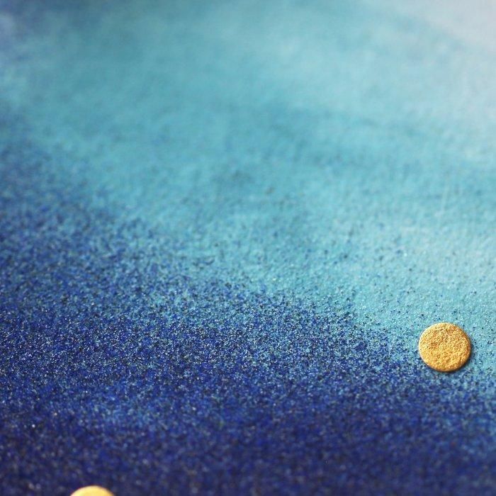 クロード・モネの絵画の配色を参考に、岩絵具を塗りました。岩絵具一つ一つの粒子が、モネの筆跡のように複雑に混ざり合い、深く美しい配色になっております。