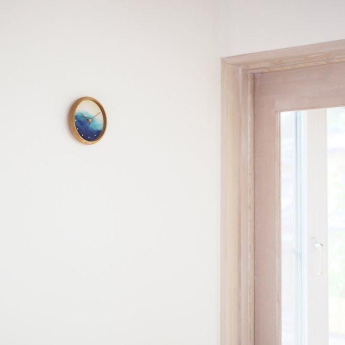 現代のインテリアに馴染みつつも素材や手仕事の魅力を静かに感じる、絵画のような時計です。