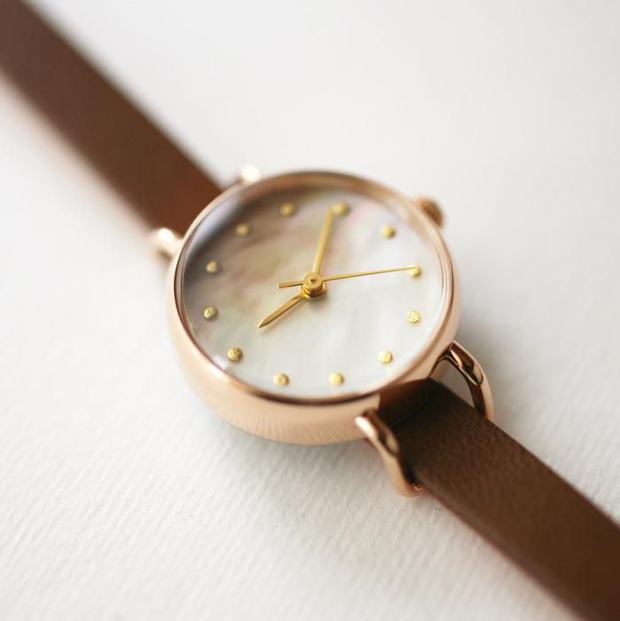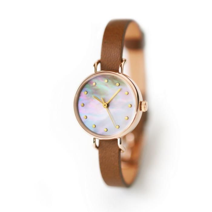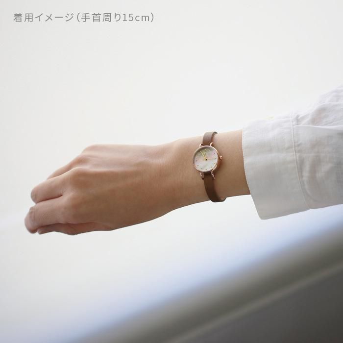 ケース…ステンレス製 IPピンクゴールドメッキ 対応ベルト幅:7mm 針…ゴールド(細棒) インデックス…金箔 ◆日常生活防水(3気圧防水)◆強化ガラスレンズ◆日本製◆1年保証 ◆時計のサイズ:直径22mm厚さ7.4mm◆時計の重さ:12g(1重巻きのベルトを含む) ◆日本製アナログクウォーツ(セイコーエプソン社製) ◆時計作動温度範囲:-5℃から50℃ ◆時計精度:平均月差±20秒 ◆使用電池:SR521SW(電池寿命約2年)◆一般的な時計店にて電池交換可能な仕様ですが、弊社でもアフターケアを承ります。