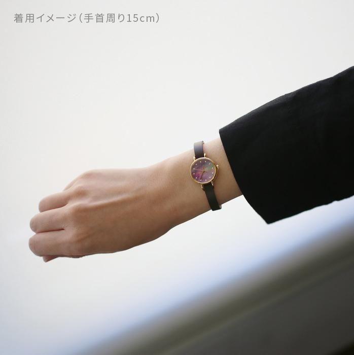 ケース…ステンレス製 IPゴールドメッキ 対応ベルト幅:7mm 針…ゴールド(細棒) インデックス…金箔 ◆日常生活防水(3気圧防水)◆強化ガラスレンズ◆日本製◆1年保証 ◆時計のサイズ:直径22mm厚さ7.4mm◆時計の重さ:12g(1重巻きのベルトを含む) ◆日本製アナログクウォーツ(セイコーエプソン社製) ◆時計作動温度範囲:-5℃から50℃ ◆時計精度:平均月差±20秒 ◆使用電池:SR521SW(電池寿命約2年)◆一般的な時計店にて電池交換可能な仕様ですが、弊社でもアフターケアを承ります。