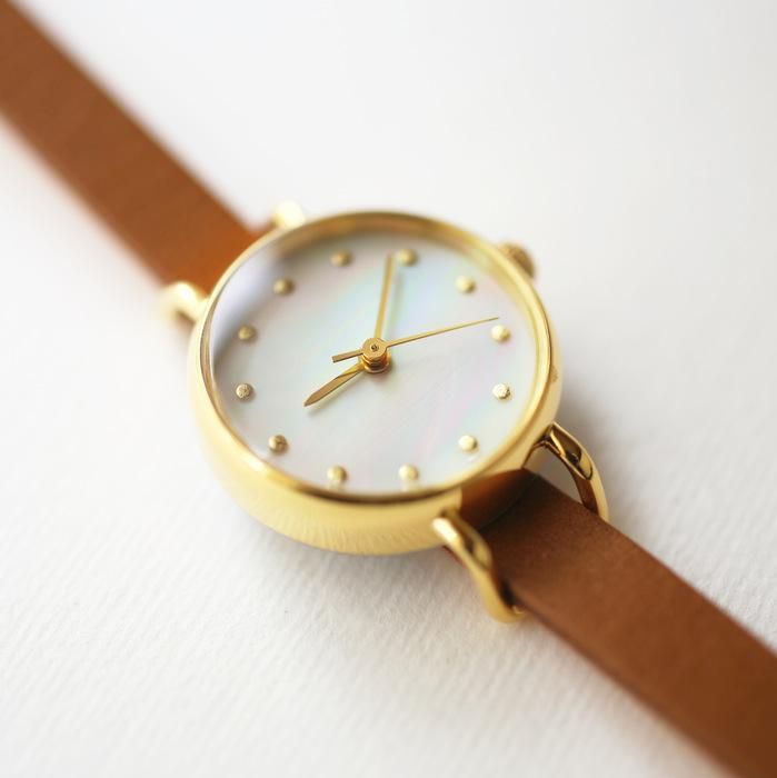 ケース…ステンレス製 IPゴールドメッキ 対応ベルト幅:7mm 針…ゴールド(細棒) インデックス…金箔 ◆日常生活防水(3気圧防水)◆強化ガラスレンズ◆日本製◆1年保証 ◆時計のサイズ:直径22mm厚さ7.4mm◆時計の重さ:12g(1重巻きのベルトを含む) ◆日本製アナログクウォーツ(セイコーエプソン社製) ◆時計作動温度範囲:-5℃から50℃ ◆時計精度:平均月差±20秒 ◆使用電池:SR521SW(電池寿命約2年)◆一般的な時計店にて電池交換可能な仕様ですが、弊社でもアフターケアを承ります。