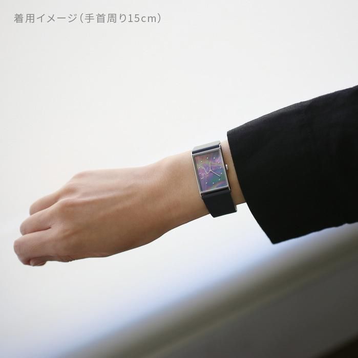 レディースサイズ(手首周り14.5-16.5cm対応)もしくはメンズサイズ(手首周り16-18cm対応)を基準に制作しています。 ベルトには7個穴が開いており、中央の穴で留めた場合、レディースサイズでは手首周りが15.5cmの方が、メンズサイズでは手首周りが17cmの方が、ちょうどよくお使いいただけます。