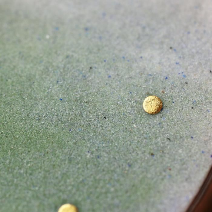 文字盤は、下地に金沢市二俣町で和紙作りをされている、石川まゆみさんに漉いていただいた和紙を使用し、