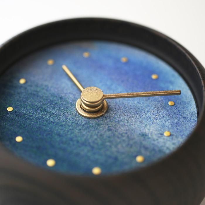 文字盤は、下地に金沢市二俣町で和紙作りをされている、石川まゆみさんに漉いていただいた和紙を使用し、
