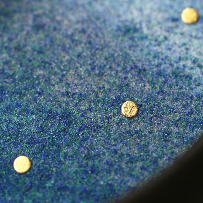 その上に天然石を砕いて作られる「岩絵具」を幾重にも塗り重ねています。
