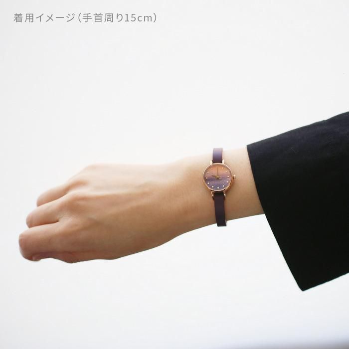 ベルトには7個穴が開いており、中央の穴で留めた場合、手首周りが15.5cmの方がちょうどよくお使いいただけます。