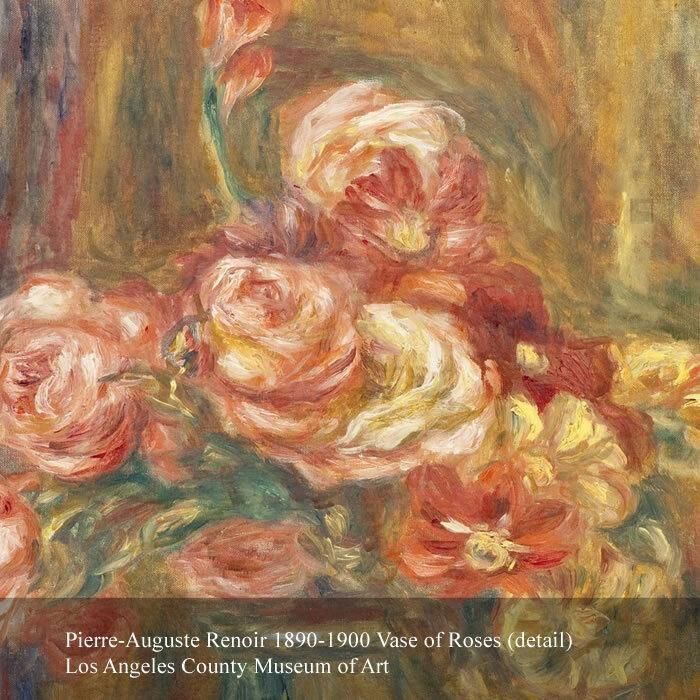 ルノワールの絵画の配色を参考に、岩絵具を塗りました。岩絵具の一粒一粒が、ルノワールの筆致のように柔らかく溶け合い、温かく瑞々しい色調を生み出しています。