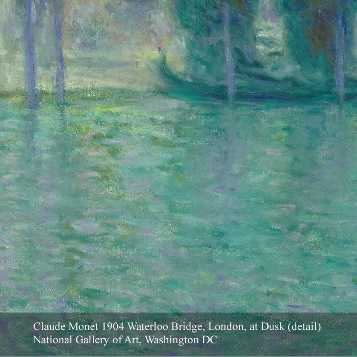 クロード・モネの絵画の配色を参考に、岩絵具を塗りました。岩絵具一つ一つの粒子が、モネの筆跡のように複雑に混ざり合い、深く美しい配色になっております。