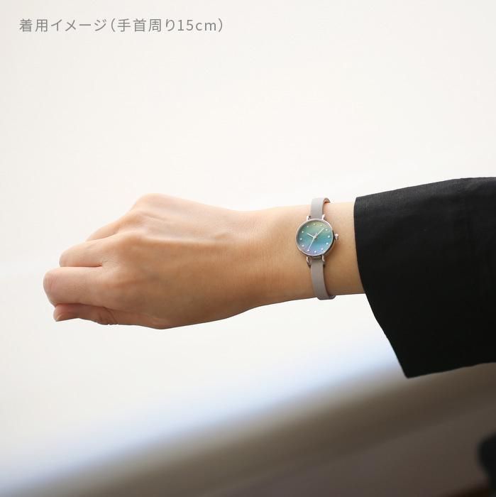 ベルトには7個穴が開いており、中央の穴で留めた場合、手首周りが15.5cmの方がちょうどよくお使いいただけます。